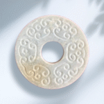 This Han Dynasty jade pendant with cloud and groove patterns is an exquisitely crafted and elegantly decorated piece. Carved from fine jade, its surface is adorned with flowing cloud and groove patterns. The undulating lines resemble swirling clouds, reflecting the Han Dynasty people’s reverence for the natural world. Cloud and groove patterns symbolize auspiciousness and continuity, and were often used in ceremonies or as personal adornments to pray for blessings and good fortune. This jade pendant not only showcases the superb jade carving skills of the Han Dynasty but also reflects the cultural spirit of the time, which emphasized harmony, etiquette, and aesthetics.